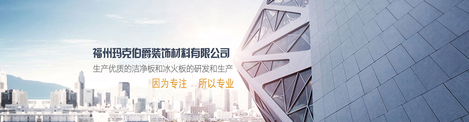 福州瑪克伯爵裝飾材料有限公司成立于2002年,是一家專業(yè)研發(fā)A級防火材料和生產(chǎn)內(nèi)外墻可替代裝飾材料的公司,主要價格生產(chǎn)各類工程裝飾用品:冰火板、醫(yī)用抗菌板、保溫一體板、隧道板等,產(chǎn)品具有防火防水、綠色環(huán)保、無毒、無煙無排放、抗菌、A級防火等多項技術優(yōu)勢。
